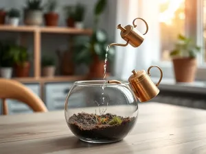 W otwartych kompozycjach z klasycznymi roślinami pokojowymi podlewaj podobnie jak doniczki, ale mniejszymi porcjami, bo w naczyniu zwykle jest mniej ziemi. W ogrodach z sukulentami woda pojawia się jeszcze rzadziej – w cieplejszym okresie czasem co 3–4 tygodnie, zimą nawet rzadziej.